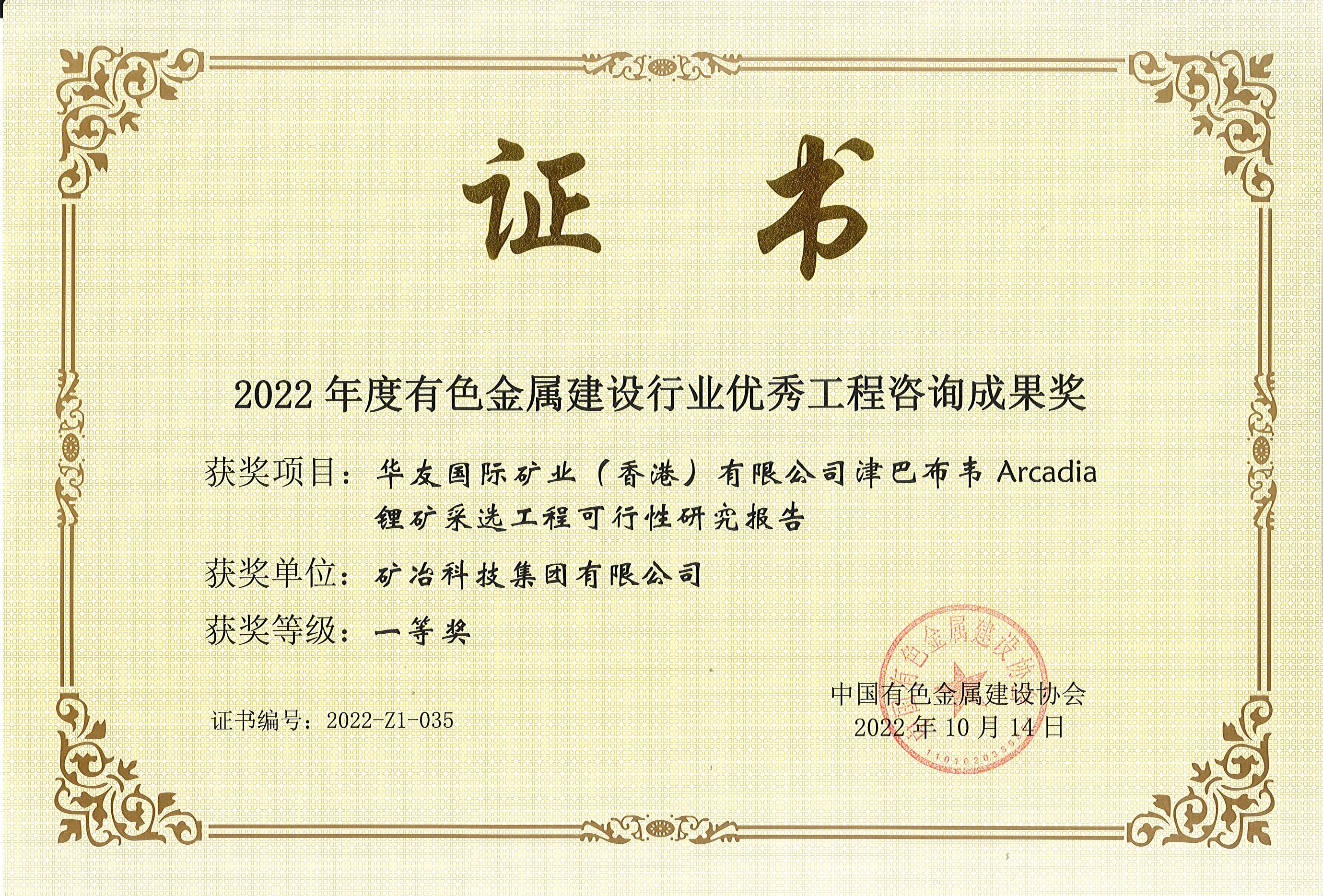 华友国际矿业(香港)有限公司津巴布韦Arcadia锂矿采选工程可行性研究报告